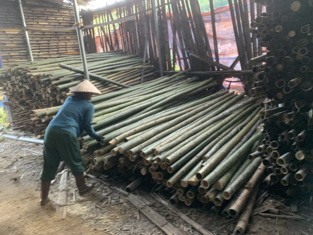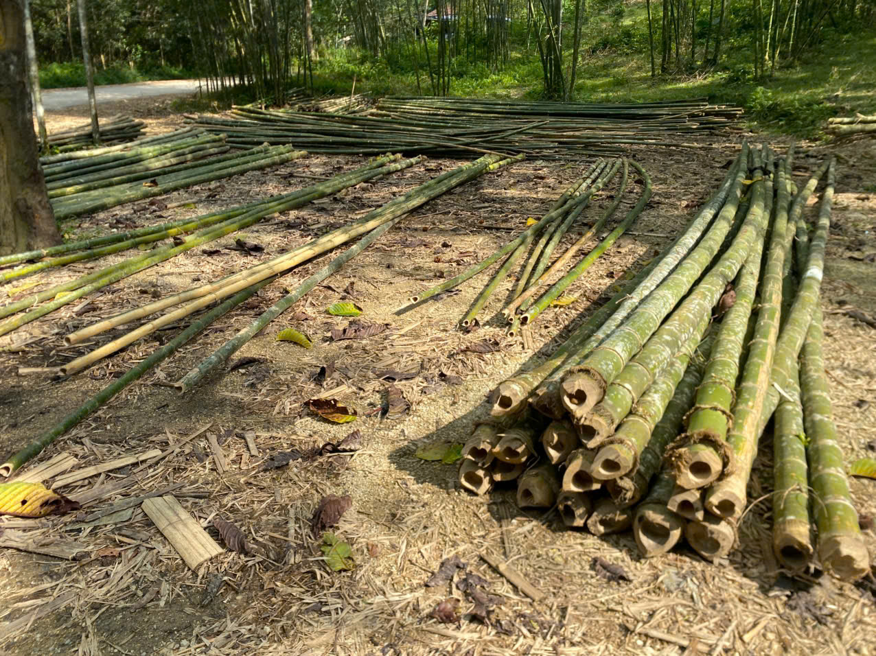 Bước 4: Tre được phân loại, loại 1-2 được giữ nguyên cây cho mục đích làm nhà, công trình và giàn giáo