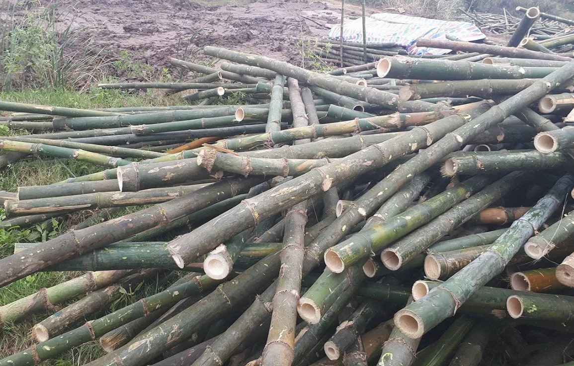 Loại 2,3,4 được cắt làm cọc và chuyển về bãi tập kết cọc tre.